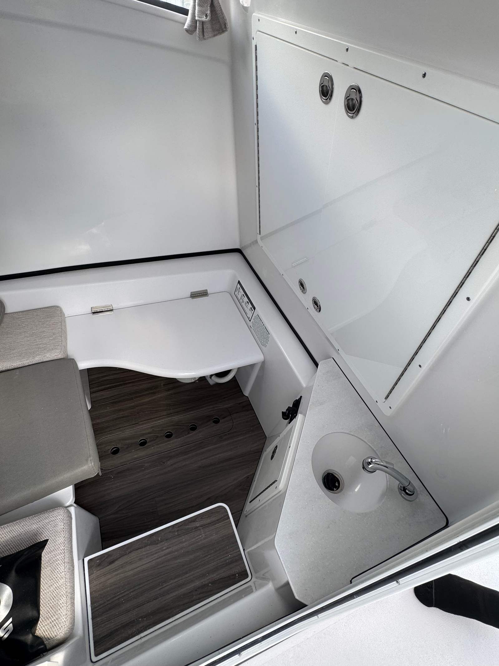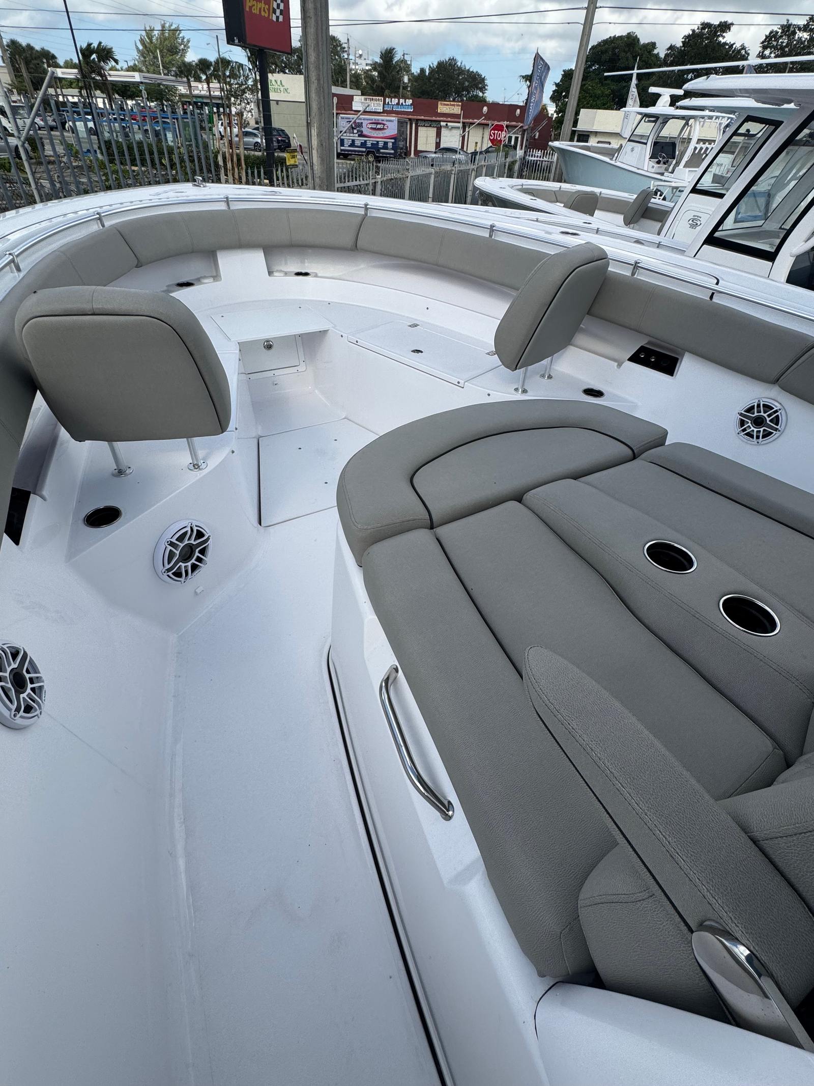 The Sportsman Open 352 is packed with premium features designed to elevate your boating experience. For anglers, the inclusion of two Electric Reel Outlets makes deep-drop fishing and other specialized techniques a breeze. The Garmin GXM 54 SiriusXM Weather Receiver provides real-time weather updates, helping you plan your outings with precision and safety. The SeaKeeper 3 Gyroscopic Stabilizer (GYRO) is a standout feature, dramatically reducing roll and enhancing comfort even in choppy waters.The boat’s helm is equipped with the Yamaha Helm Master EX, including Auto Pilot, which streamlines navigation and offers intuitive control at your fingertips. The Garmin GMR 434 xHD3 Open Array radar system delivers advanced situational awareness, ensuring you’re always informed about your surroundings.Comfort and convenience are at the forefront of the Open 352’s design. The fiberglass console with FG liner and a 65 Qt cooler seat provides a sturdy, stylish command center and a practical spot to keep refreshments chilled. The fiberglass leaning post features a tackle center and sink, making it easy to organize gear and clean up after a successful day on the water. The hardtop underside is finished in Harbor Haze, adding a touch of elegance, while the powder coating in white and Sileather Ash Gray upholstery create a modern, inviting atmosphere throughout the boat.