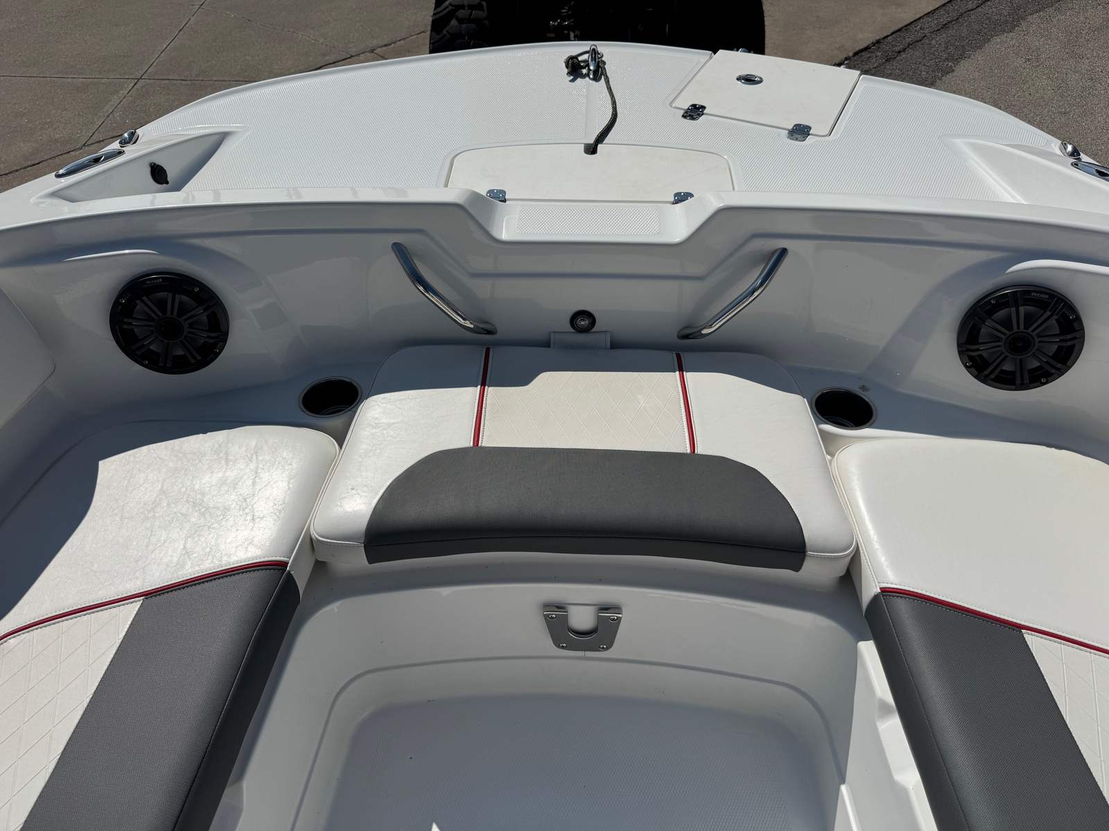 The 2021 Tahoe 1950 Deckboat is as practical as it is enjoyable. Its manageable 19-foot length makes it easy to store, trailer, and dock, so you can spend less time worrying about logistics and more time enjoying the water. The efficient engine provides a great balance of power and fuel economy, allowing you to maximize your time on the water without breaking the bank. Whether you are navigating busy marinas or exploring quiet lakes, the Tahoe 1950’s responsive handling and compact size make it a breeze to operate.This deckboat is also designed with convenience in mind, offering ample storage for all your boating essentials. From life jackets to fishing gear to water toys, you will have plenty of space to keep everything organized and within reach. The intuitive controls and easy-to-read gauges make piloting the Tahoe 1950 straightforward and stress-free, so you can focus on having fun and making memories.