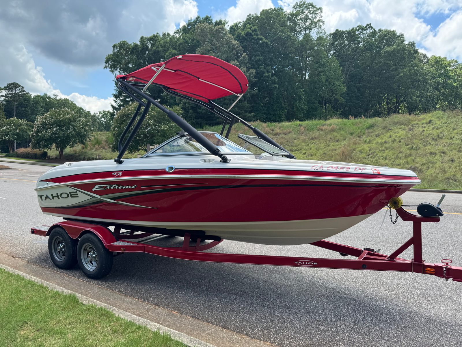 2014 TAHOE Q7I EXTREME (20’7”) – FULLY SERVICED AND READY FOR THE SEASON FRESH LISTING. A full systems check has been completed on the boat upon arrival. All systems are in great working condition and the boat needs nothing. Equipped with the Mercruiser 5.0L MPI motor with 236 original engine hours. It comes equipped with the following options: -Sport Arch Tower w/ Bimini -Dual Captains Chairs -Walk Thru Space -Ski Locker Storage -Depth Finder -FM/AM Radio Head Unit Much more than what all is listed here. Rated for a total of 9 Person(s). Trailer shown in photos is included along in the list price.