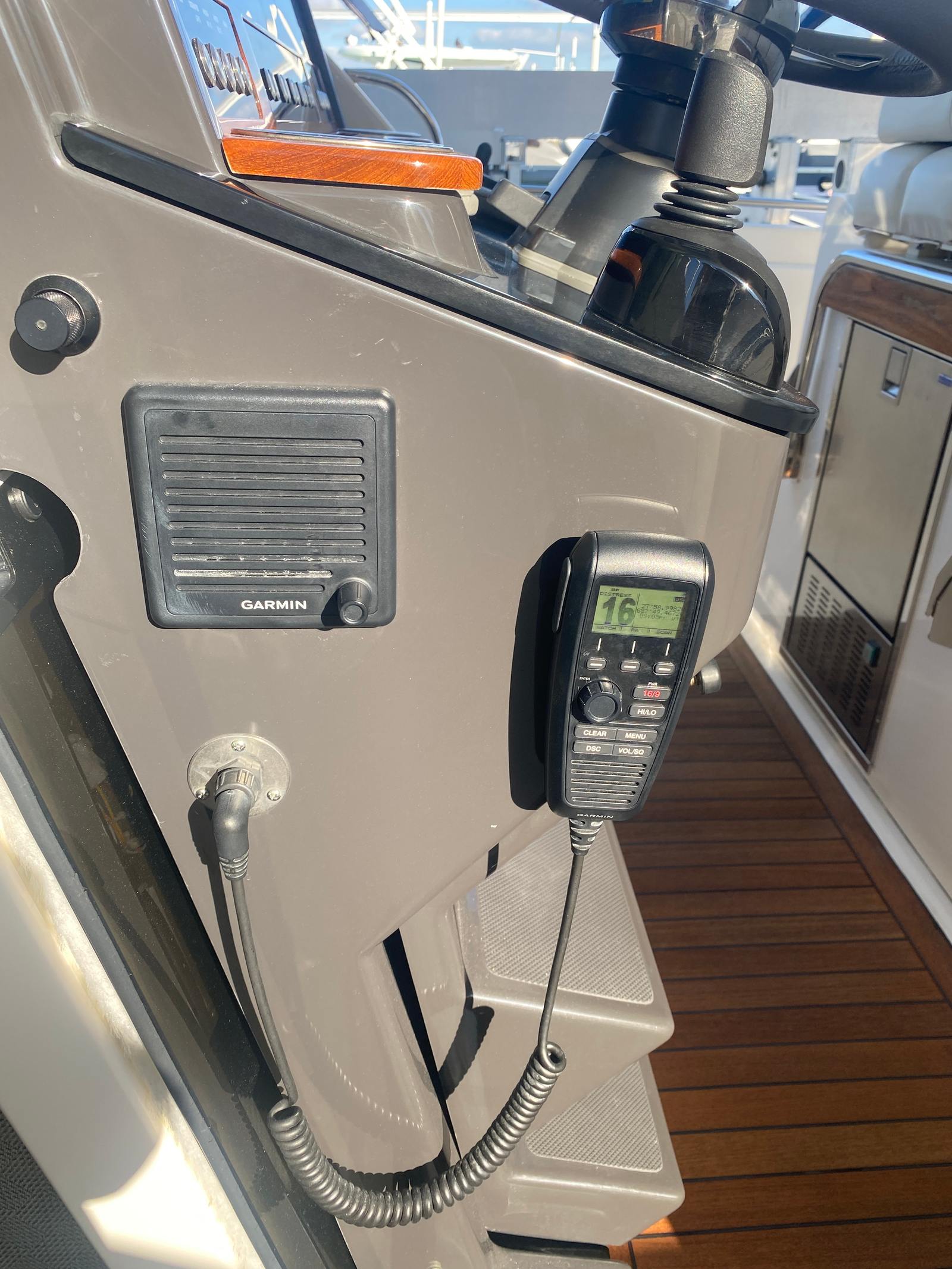 • VHF Radio: Communication is handled by a Garmin 315 VHF radio.