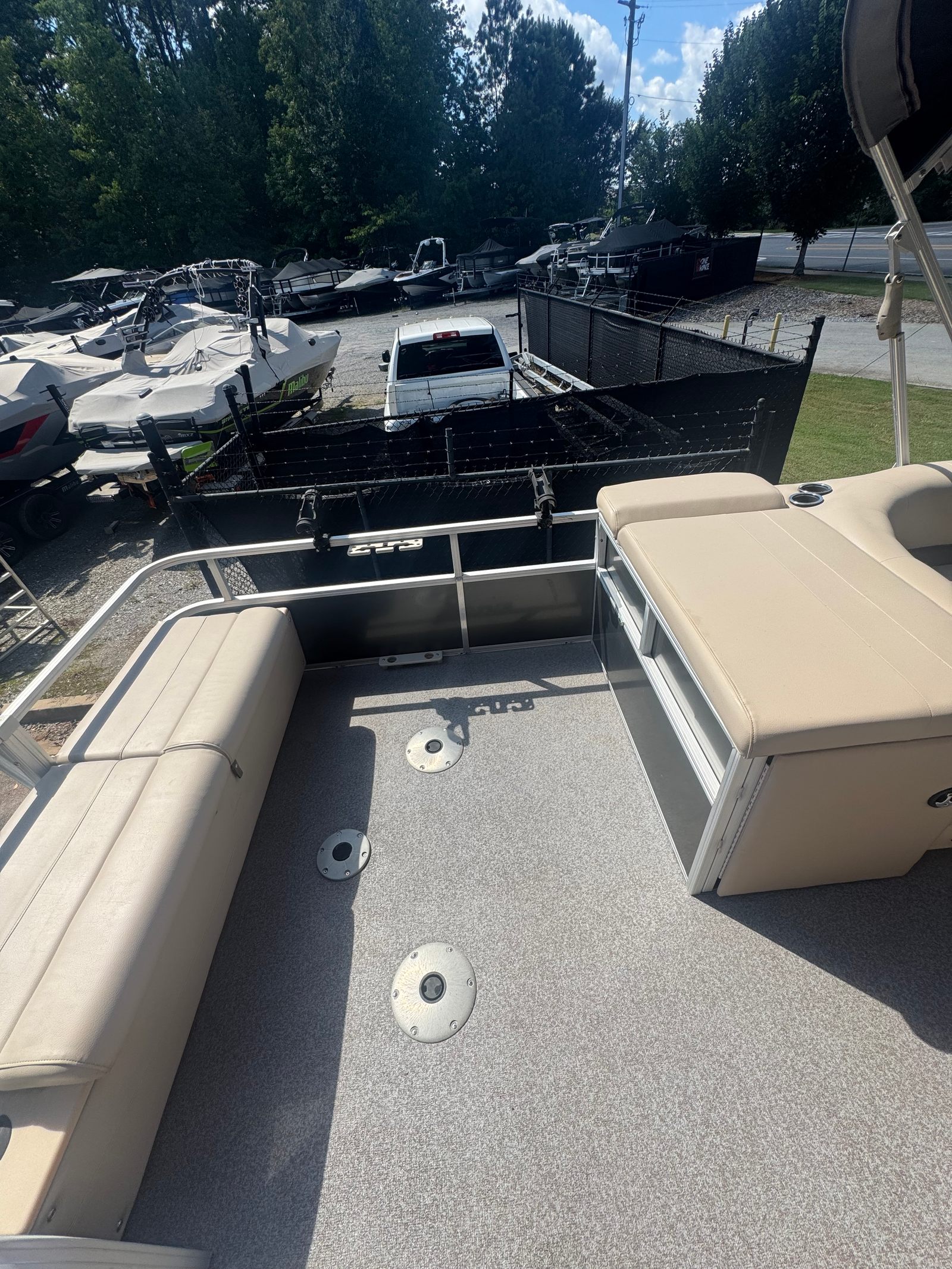 Powered by a single engine with 150 horsepower and 585 engine hours, the Tracker 22 XP3 delivers reliable performance and smooth handling. The engine’s robust output ensures you have plenty of power for cruising, towing water toys, or reaching your favorite fishing spot with ease. The pontoon’s design allows for stable navigation and effortless maneuvering, making it a pleasure to captain whether you’re an experienced boater or new to the water. With its efficient engine, you can enjoy extended trips without worrying about frequent refueling, maximizing your time on the water.