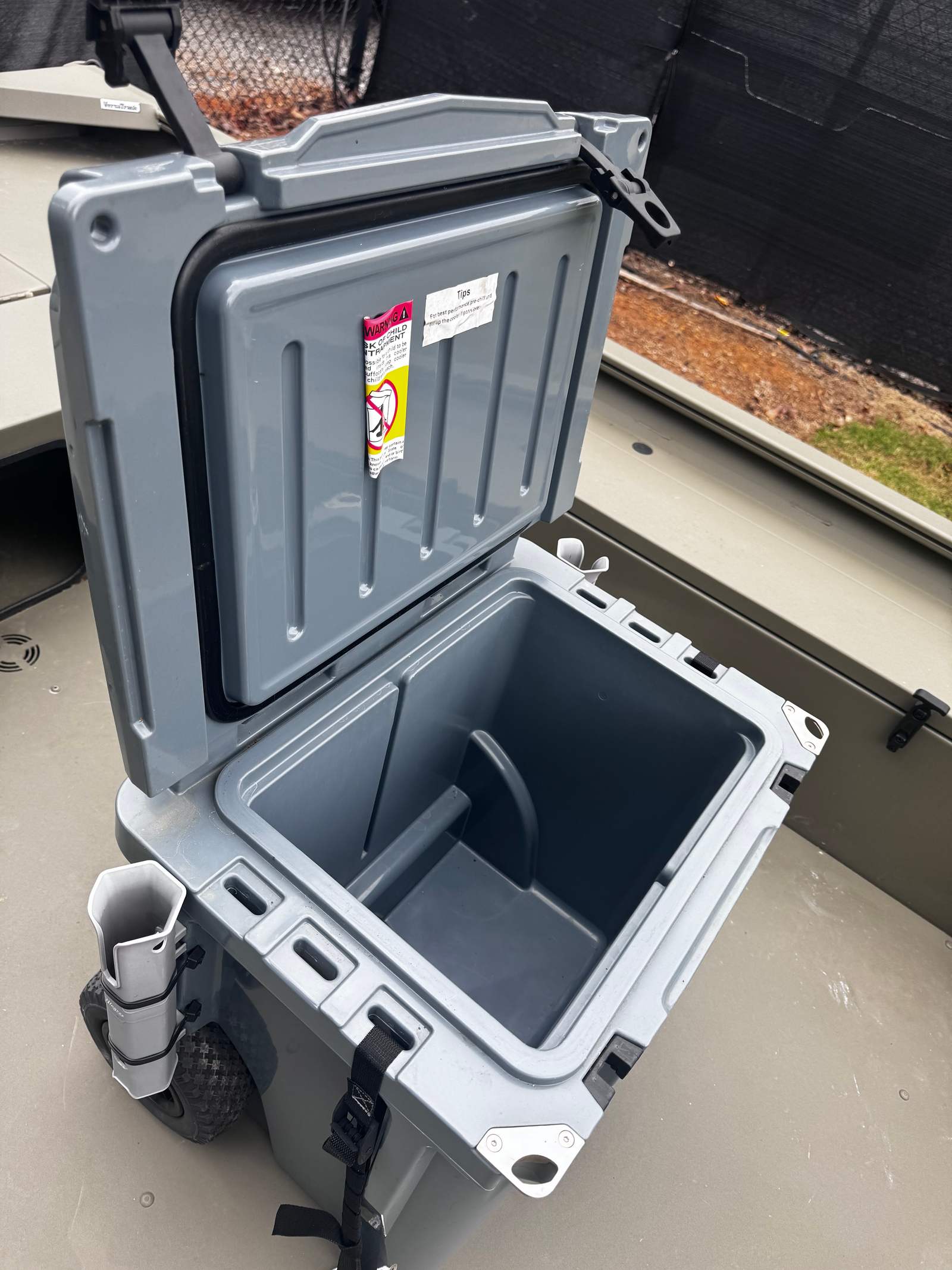 Insulated cooler on wheels with rod holders