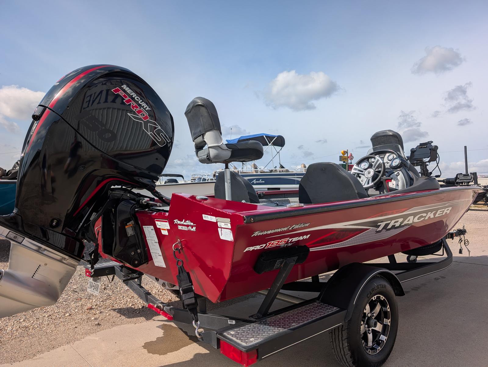 At the heart of the Tracker Pro Team 195 TE is a powerful 150-horsepower engine, delivering the speed and agility needed for both competitive fishing and leisurely cruises. This engine provides smooth acceleration and reliable performance, allowing you to reach your favorite fishing spots quickly and efficiently. Whether you are navigating calm lakes or tackling more challenging waters, the 150 HP engine ensures that you have the power and control necessary for a safe and enjoyable boating experience. The Tracker Pro Team 195 TE’s performance capabilities make it a standout choice among Bass Boat boats for sale, offering a thrilling ride every time you hit the water.