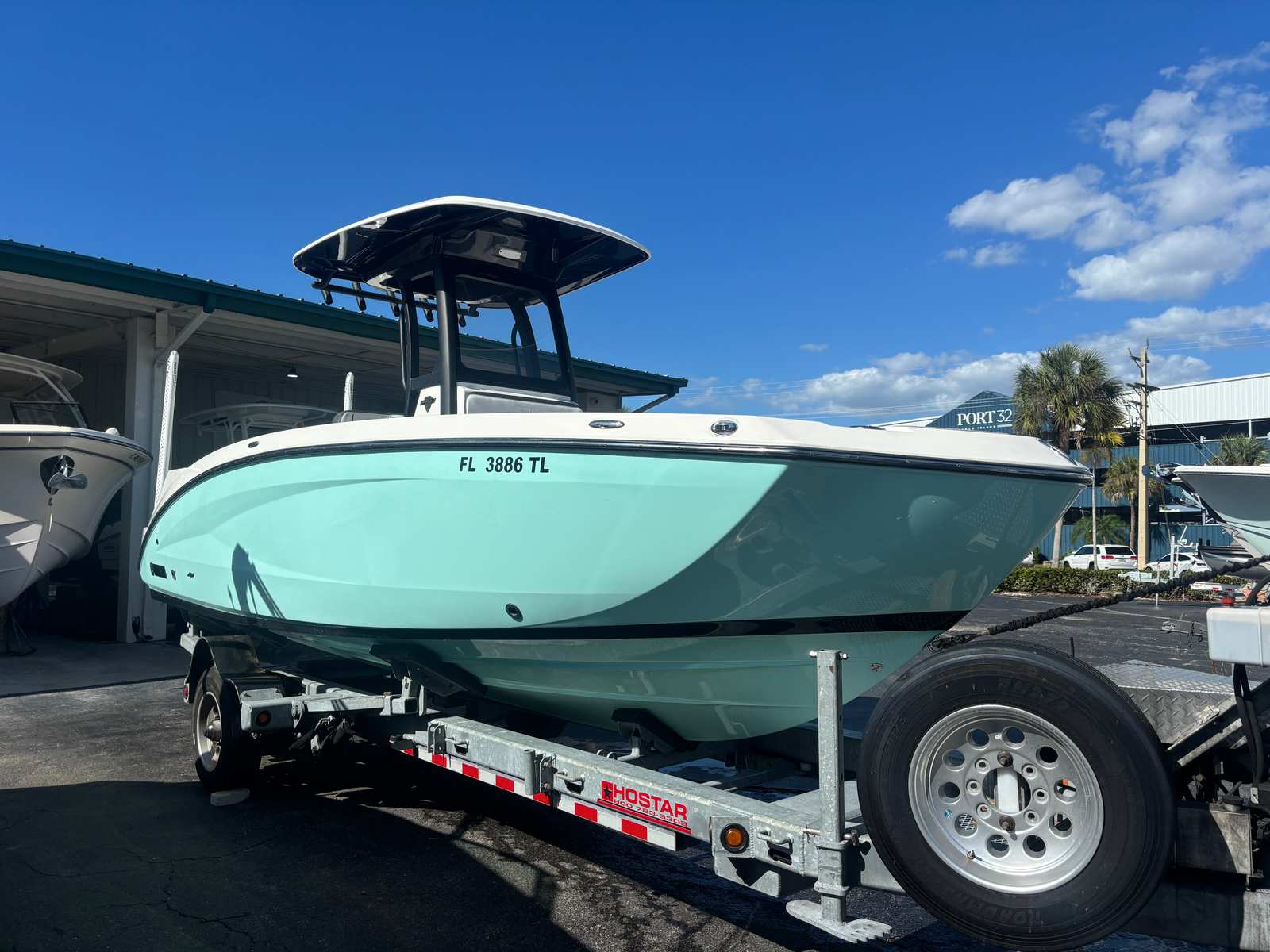 The FSH Sport E combines offshore fishing capability with the comfort and versatility of a family boat. Its spacious 22-foot layout comfortably seats up to 10 passengers and features a large swim platform, hard T-top, and tons of storage for all your gear.